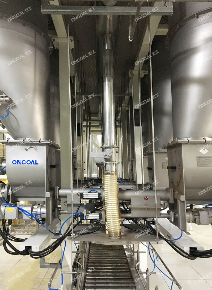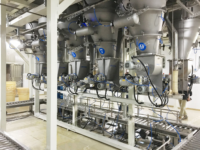 配料系統(tǒng)的工作流程是:人工將物料利用提升機(jī)提升至平臺;人工將物料分別放到對應(yīng)的料倉;設(shè)定配方--人工將周轉(zhuǎn)桶放到輸送線入口一周轉(zhuǎn)桶定位--喂料機(jī)將物料送入周轉(zhuǎn)桶;計(jì)量稱精確稱重一由輸送機(jī)自動輸送到下一單元重復(fù)配料-周轉(zhuǎn)桶自動輸送到出口,人工收集放標(biāo)識卡。