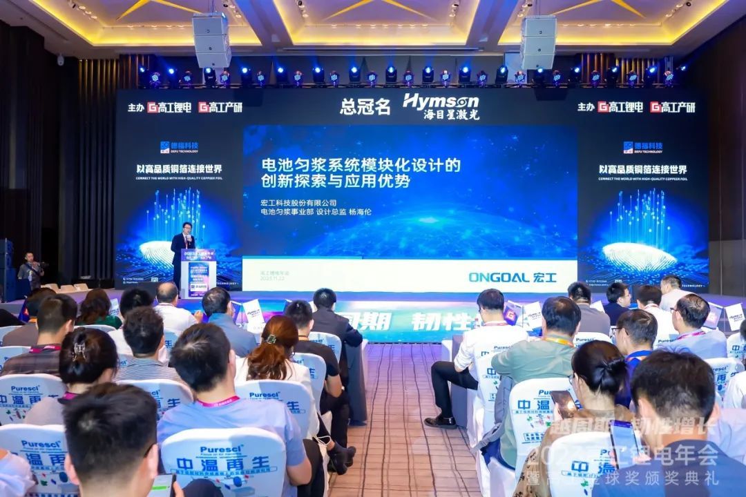 11月21-23日,以“穿越周期 韌性增長”為主題的2023高工鋰電年會盛大舉行。宏工科技電池勻漿事業(yè)部設(shè)計總監(jiān)楊海倫發(fā)表主題為“電池勻漿系統(tǒng)模塊化設(shè)計的創(chuàng)新探索與應(yīng)用優(yōu)勢”的演講,并收獲“2023年度投資價值企業(yè)獎”。