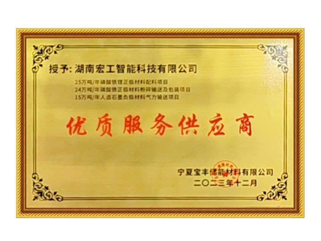 近日,宏工科技憑借優(yōu)異的產(chǎn)品質(zhì)量和服務(wù)及出色的交付能力,獲得寧夏寶豐“優(yōu)質(zhì)服務(wù)供應(yīng)商”認(rèn)可。
