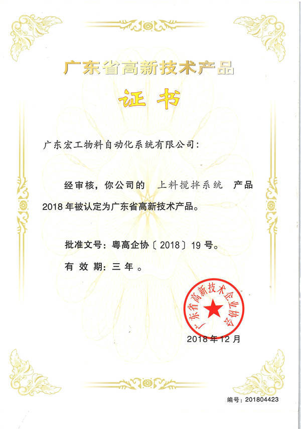 高新技術產(chǎn)品認定-上料攪拌系統(tǒng)