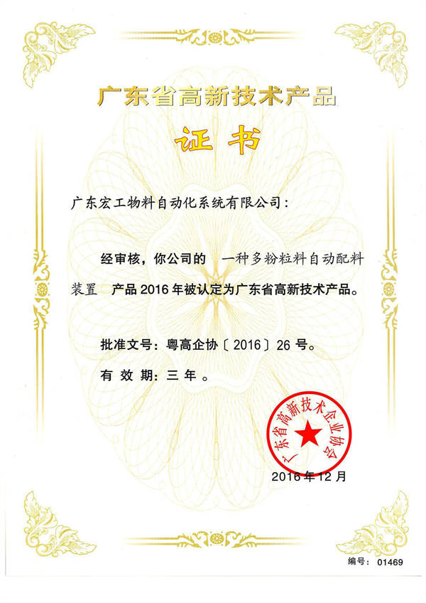 高新技術產(chǎn)品認定-一種多粉粒料自動配料裝置