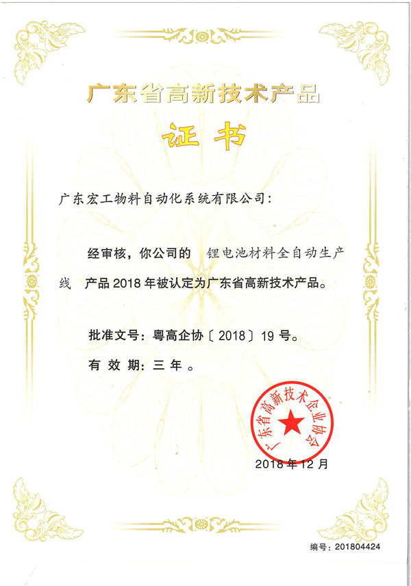高新技術產(chǎn)品認定-鋰電池材料全自動生產(chǎn)線