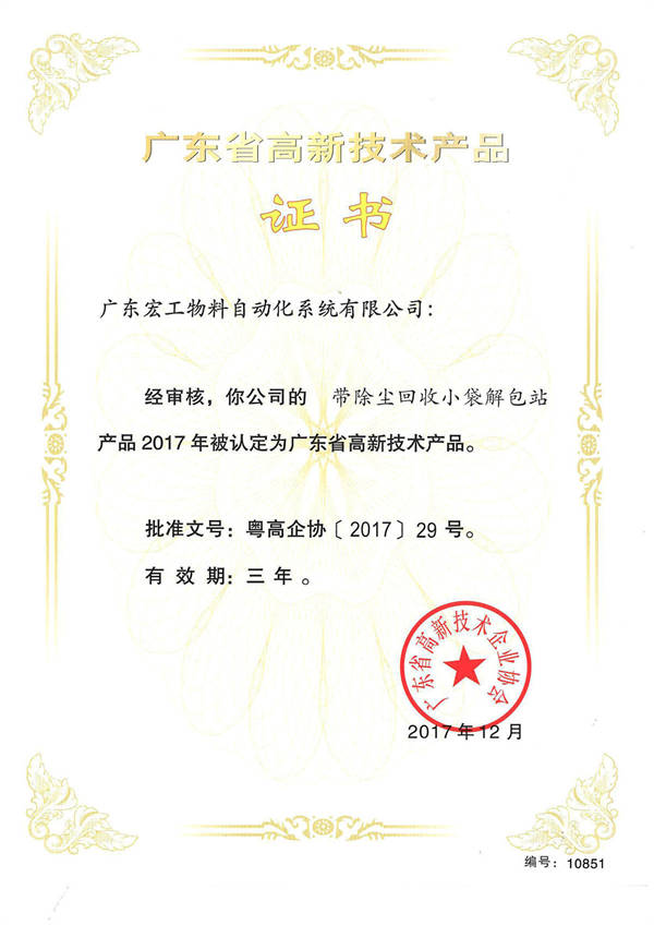 高新技術產(chǎn)品認定-帶除塵回收小袋解包站